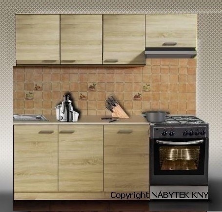 levné kuchyně do pronájmu, délka 120cm + 60cm dig. skříňka = 180cm, barva dub sonoma, výška horních skříněk 60cm, výška spodních s deskou 85cm, v ceně je prac. deska 120cm vkuse, v ceně není dřez a spotřebiče, kuchyně je v demontu v balíčkách a vejde se do osobního auta, SKLADEM