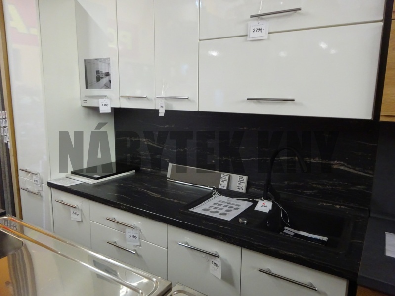 vzorová kuchyně, dvířkovina MDF lesk, korpus skříňěk bílý, kování BLUM, uchyt kovový, cena kuchyně podle počtu skříněk