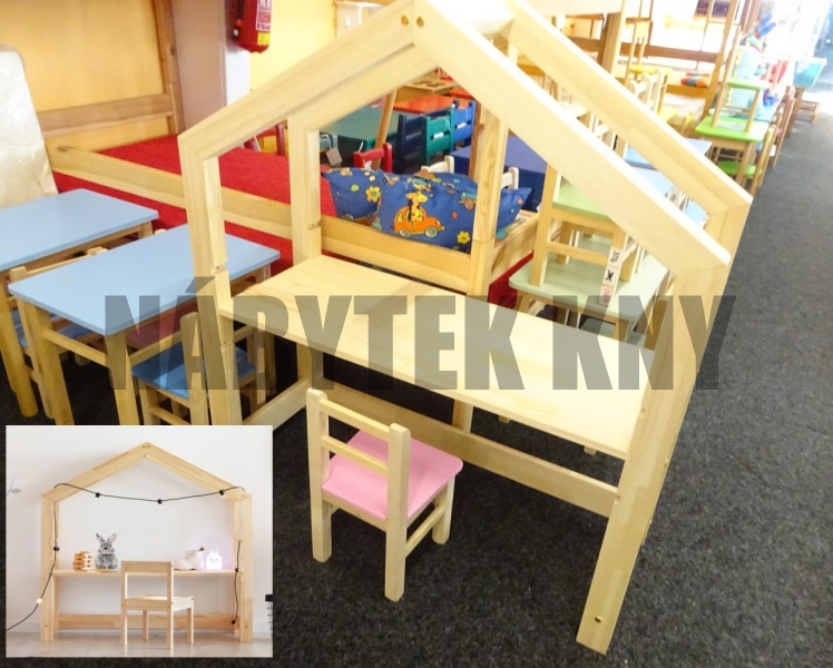 v ceně postel se vestavěnou skříní: 195x18005x960mm a schody uložné šuplíky 490x1320x100mm, psací stůl 110x755x705mm a nástavba na PC 1090x630x270mm, v ceně není židle a matrace