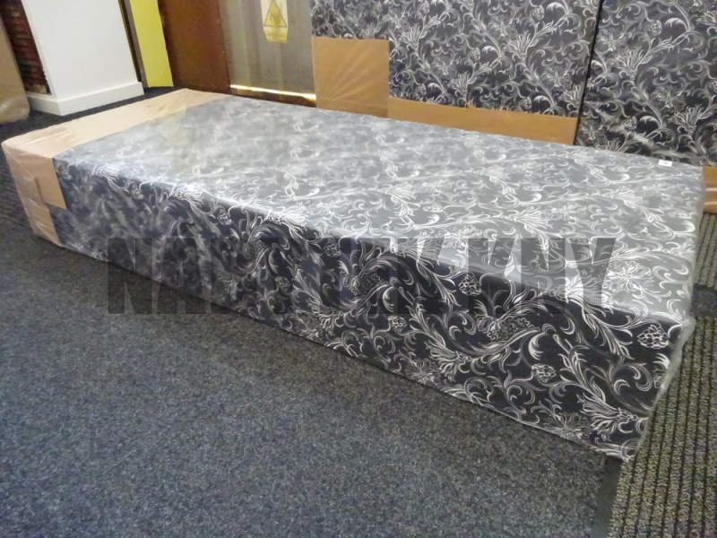 válenda pružinová s uložným prostorem, válenda je celočalouněná pružina/molitan 2cm, vypodložen kokosovou deskou 1,5cm, do 120kg, český výrobek, látka černo-bílá