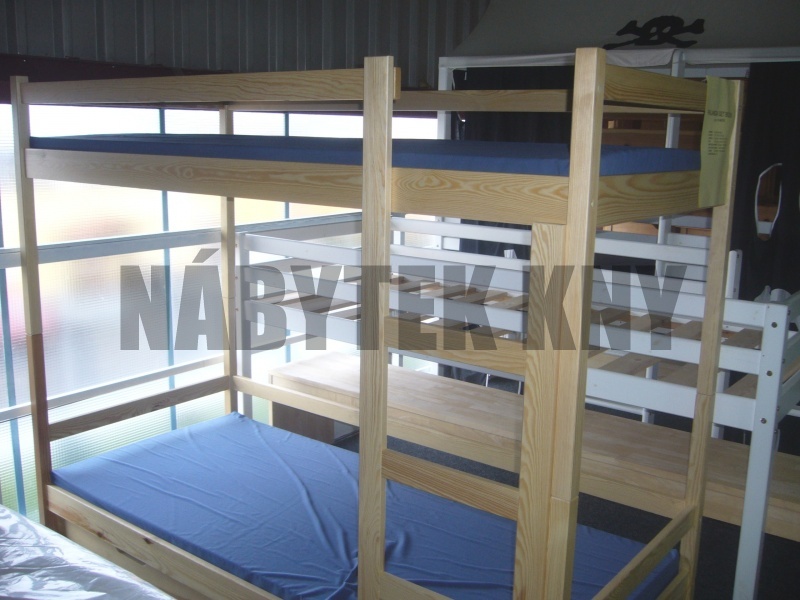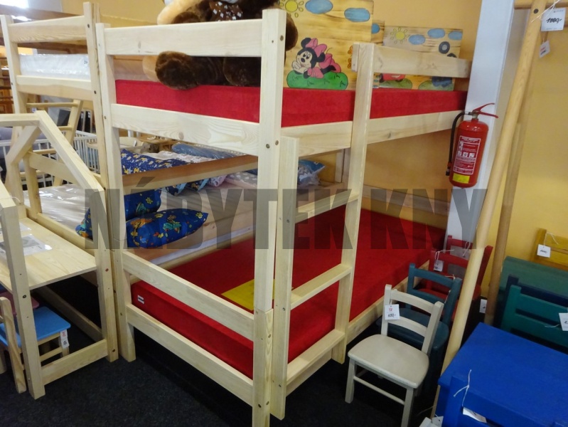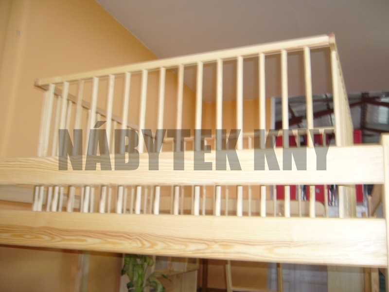materiál borovice, lakovaná, v ceně jsou 2 rošty a žebříček, v ceně není matrace (200x90cm), zboží dodáváme v rozloženém stavu, skladem ihned k odběru, vejde se do osobního auta, vlastní výroba, na přání vyrobíme jakýkoliv rozměr