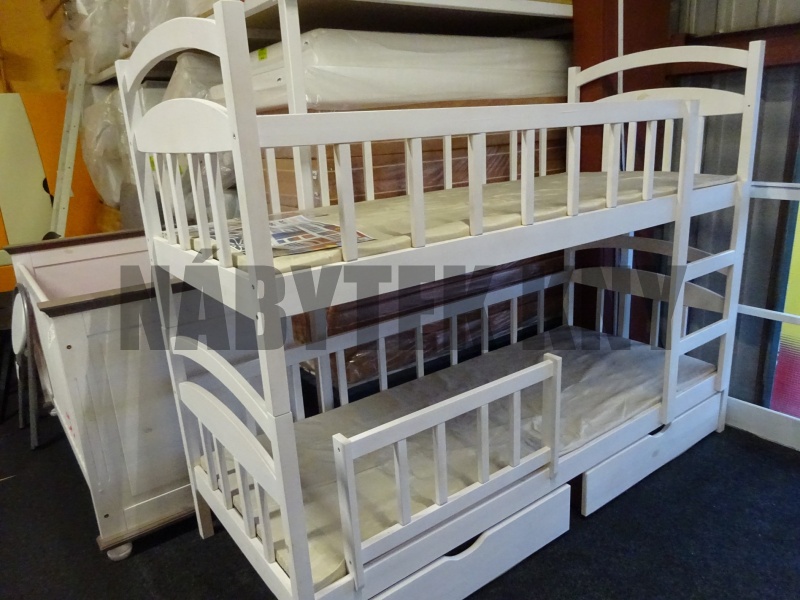 v ceně je palanda, výška palandy 160cm, 2 rošty, 2 matrace 200x80cm, 2 šuplík pod postel, bezpečností zábrana, dole odepávací zábrana, z palandy se dají udělat 2 samostatné postel, nedostupná