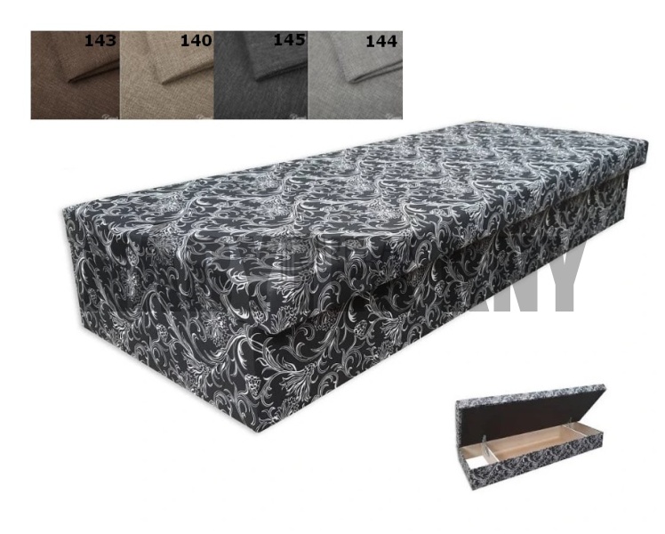 pružinová s uložným prostorem, nosnost do 120kg, český výrobce, skladem látka tm. šedá 145 a tm. hnědá 142 nebo na objednání ze vzorníku
