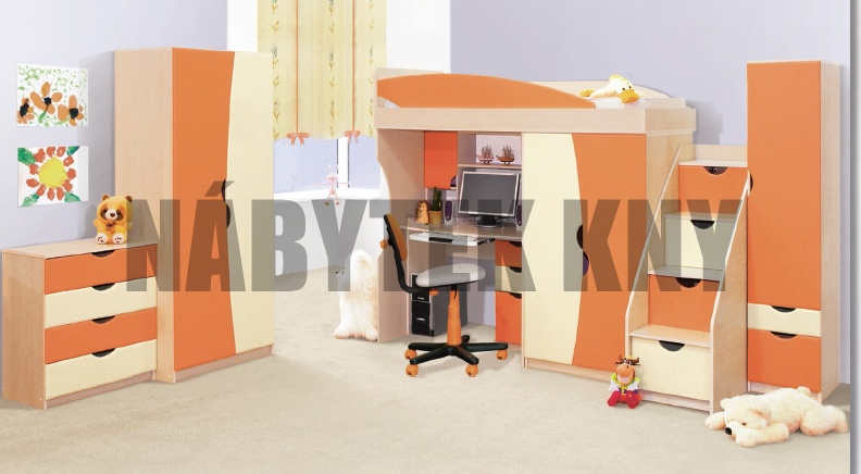 Levný dětský pokoj hned k odběru na prodejně v barvě oranž a limetka.