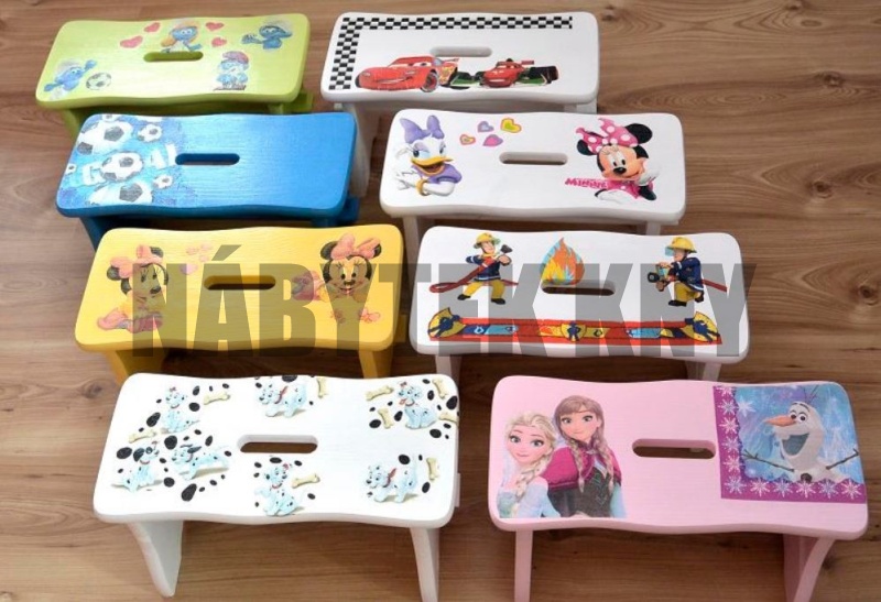 pevné stabilní židlčky, v 6 barevných provedeních s obrázky, modely níže, cena kus 290Kč, dodáváme v sestaveném stavu, doprodej