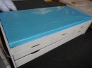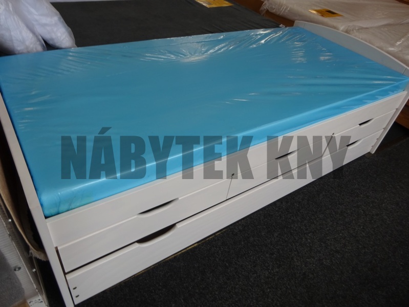 materiál borovice, bílá lazura, rozměry postele: 206x98x63cm, výška sedu 52cm, v ceně je rošt, v ceně je matrace, zboží je v demontu, v balíku, skladem nebo přírodní borovice 18 cena 5.999Kč