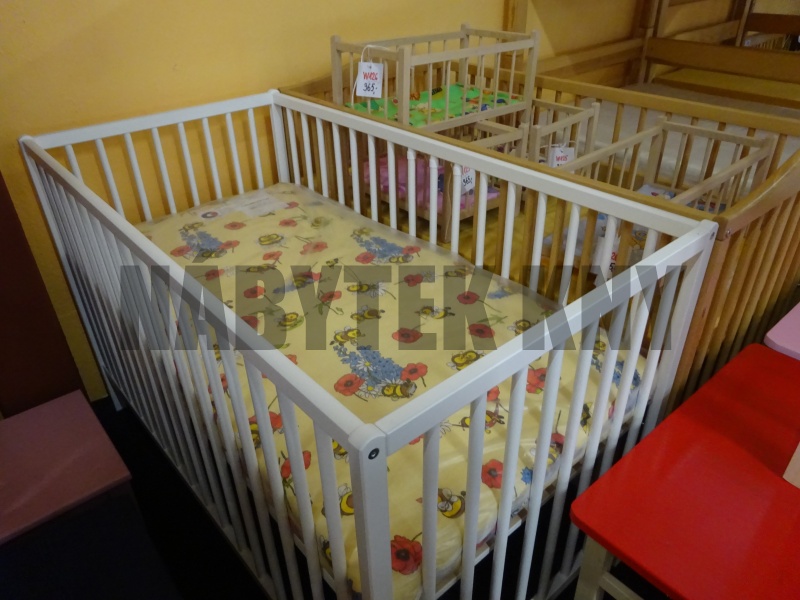 matriál buk, barva bílá, vhodná na dětský nábytek, v ceně je rošt, v ceně není matrace 120x60cm, v demontu, skladem