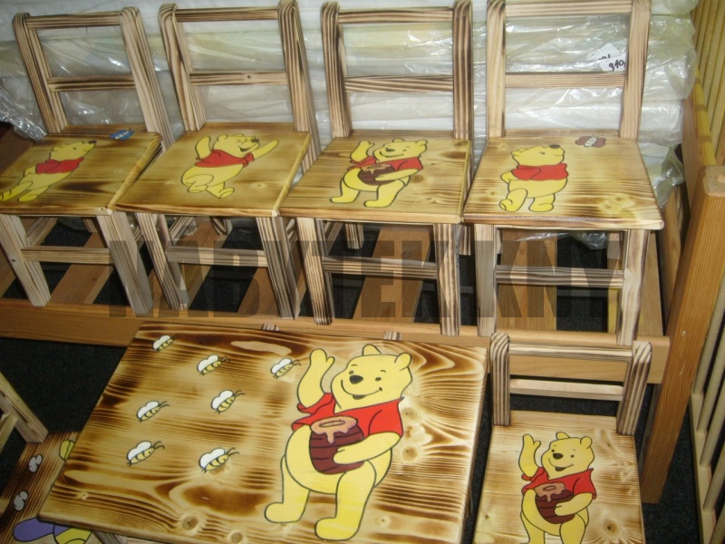 materiál masiv, motiv medívek pu, zboží dodáváme ve smontovaném stavu, židlička 459kč, stoleček 699Kč, skladem ihned k odběru