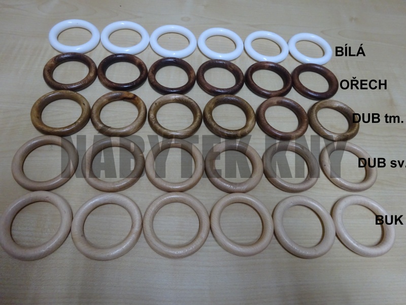 5 barev: buk, dub sv., dub tm., ořech a bílá, materiál buk, mořeno, lak (bílá plast)