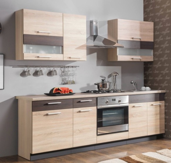 dvířkovina dub světlý/tmavý, moderní výklopné skříňky s plynovými výsuvy, v ceně je pracovní deska 240cm vkuse, v ceně nejsou spotřebiče, kuchyně je na objednání 4-6týdnů