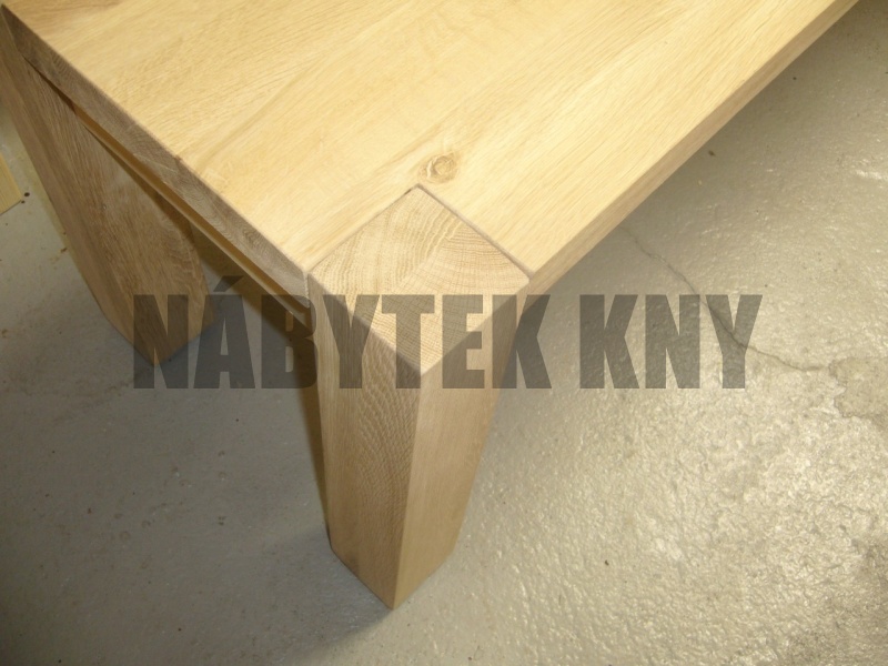 materiál dub, lakovaný, vložený nohy 8x8cm, vlastní výroba, dodáváme v sestaveném stavu, na přání vyrobíme jakýkoliv rozměr