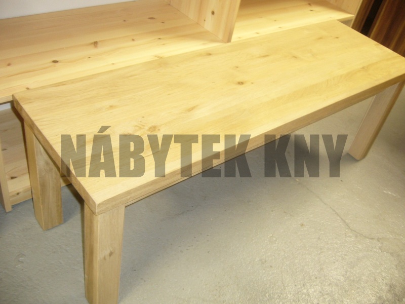 materiál dub, lakovaný, tl. 4cm, nohy 6x6cm, vlastní výroba, dodáváme v sestaveném stavu, na přání vyrobíme jakýkoliv rozměr