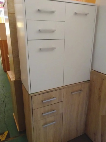 materiál lamino, desén bíllá nebo dub, zboží je v demontu, v balíku SKLADEM, v případě zájmu poskládáme