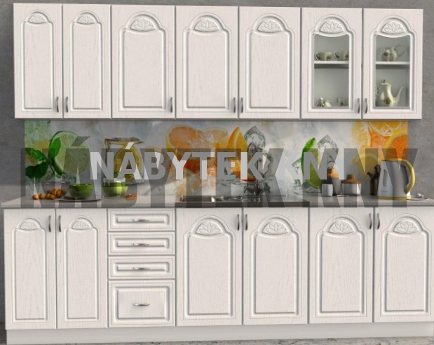 délka 260cm, výška horních skříněk 72cm, výška spodních s deskou 85cm, v ceně není dřez, pracovní deska jako na foto, kuchyně je v demontu v balíku, SKLADEM hned k odběru, v případě zájmu vyřízneme dřez a skříňky poskládáme