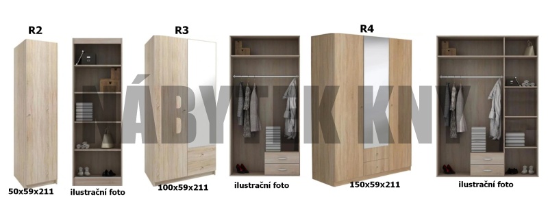 materiál lamino, desén dub sonoma, dodáváme v demontu v balíku, ceny a modely níže uvedené