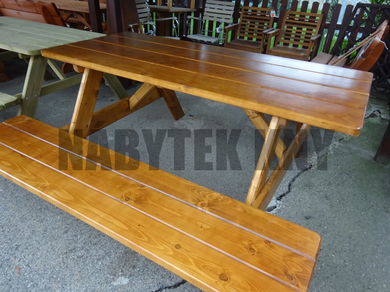 materiál masiv, odstín dub, rozměry stolu: 180x57x81cm, rozměry lavice: 180x29x41cm, rozměry setu: 180x180x81cm, vyřazen