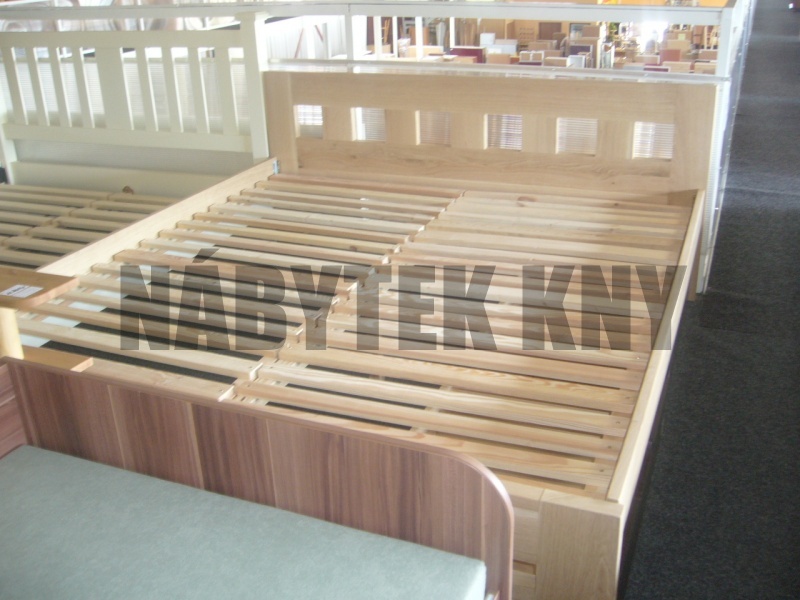 materiál dub, tl. 4cm, lakovaný,  v ceně je rošt, v ceně není matrace 200x180cm, zboží je v rozloženém stavu, vlastní výroba, můžeme vyrobit jakýkoliv rozměr, skladem ihned k odběru