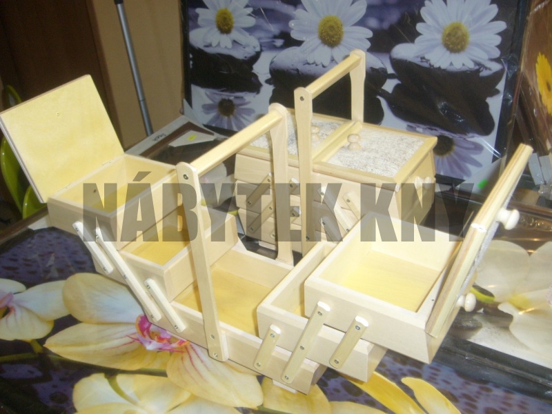 materiál borovice, lakovaná, v rozloženém stavu 3 patra, 6 zásuvek, skladem ihned k odběru