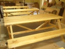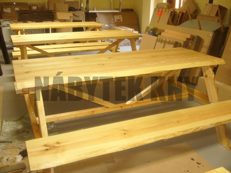 materiál borovice, lakovaná, tl. 4cm, kraj stolu nesámovaný, dodáváme ve smontovaném stavu, vyrobíme jakýkoliv rozměr, za příplatek 20%, v 10 odstínech lazur k nahlednutí na prodejně