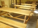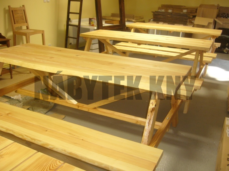 materiál borovice, lakovaná, tjl. 4cm, kraj stolu nesámovaný, dodáváme ve smontovaném stavu, na přání vyrobíme jakýkoliv rozměr a množství, v 10 odstínech za příplatek 20%