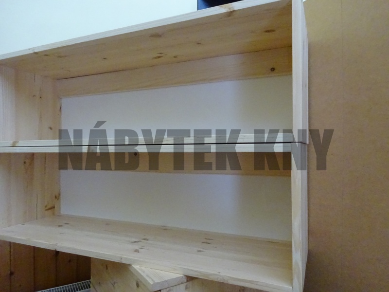 materiál borovice, lakovaná, dodáváme v sestaveném stavu, cena kus 2.590Kč, na foto 2police, vlastní výroba, jen na zakázku