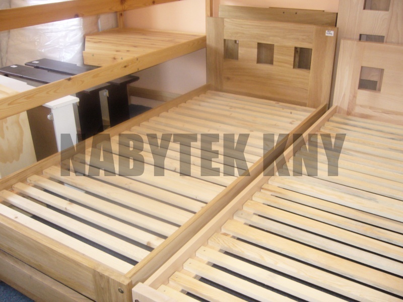 materiál dub, tl. 4cm, lakovaný, v ceně je rošt, v ceně není matrace 200x90cm, zboží je v rozloženém stavu, vlastní výroba, můžeme vyrobit jakýkoliv rozměr, skladem ihned k odběru