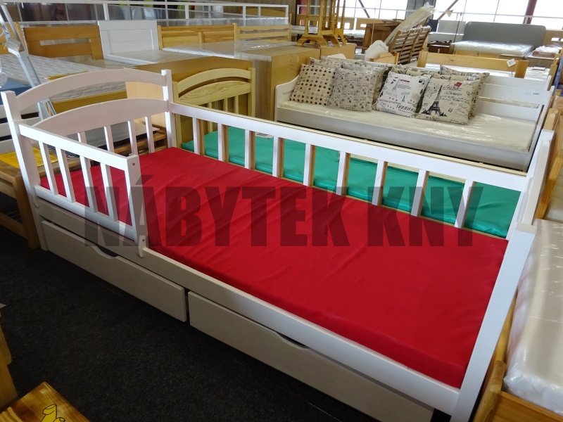 v ceně je postel, zábrana, šuplíky pod postel, rošt a matrace