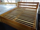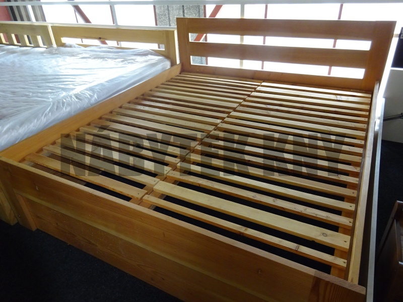 materiál modřín, lakovaný, v ceně 2 rošty výklopné, výška čela 95cm, výška sedu na posteli 54cm, úložný prostor pod postelí dno sololak, vyprodaná