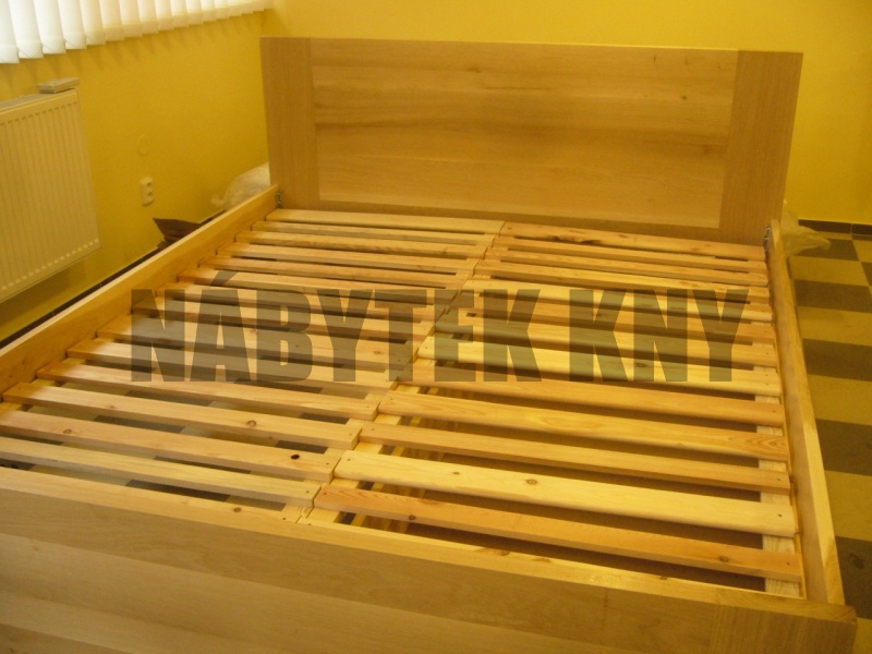 materiál dub, tl. 4cm, lakovaný, výška čela 100cm, v ceně jsou 2 rošty, v ceně nejsou šuplíky 150x90cm, vlastní výroba, jen na zakázku