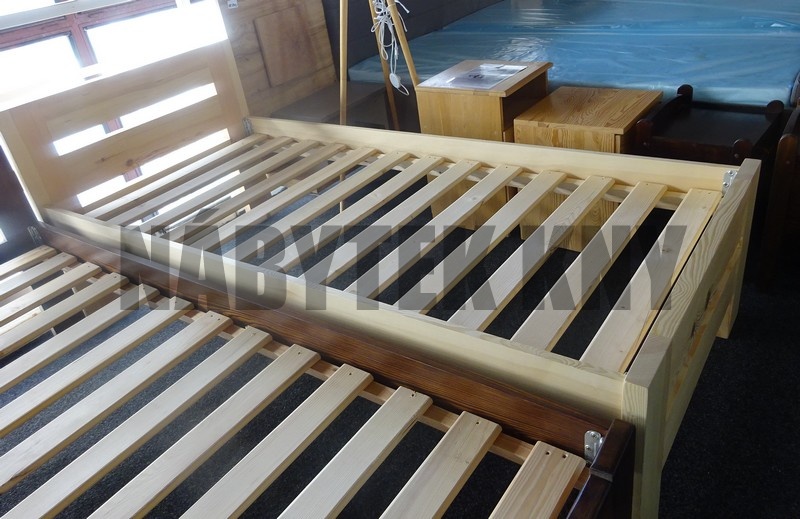 materiál borovice, lakovaná, vyšší model 50cm dobře se z ní vstává, tl. čela 4cm, v ceně je rošt, nosnost do 100kg, na přání vyrobíme jakýkoliv rozměr, nosnost na 120kg příplatek 400Kč