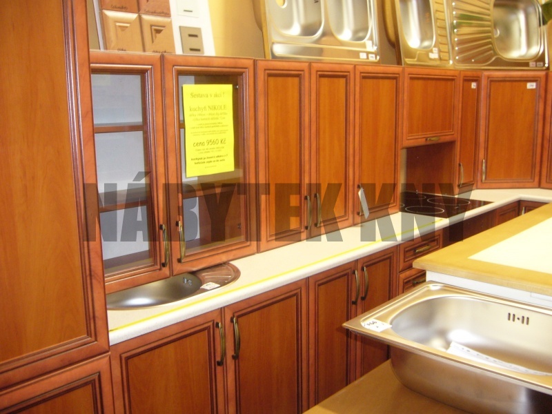 roh 370cm x 90cm, II. jakost, výška horních skříněk 72cm, výška spodních skříněk 83cm, ceně je pracovní deska, v ceně není dřez, zboží je v sestaveném stavu, prodaná