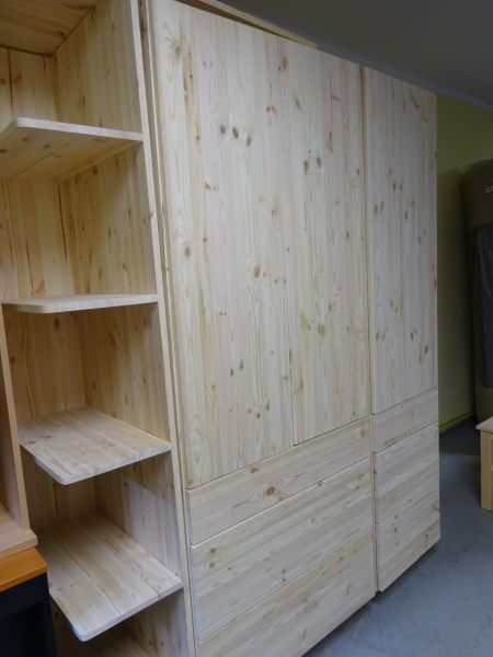 dvojskříň 80x50x200cm police+šupl cena 17.990Kč, jednoskříň 50x50x200cm police+šupl cena 14.990Kč, ukončení regál otevřený 50x25x200cm cena 8.500Kč
