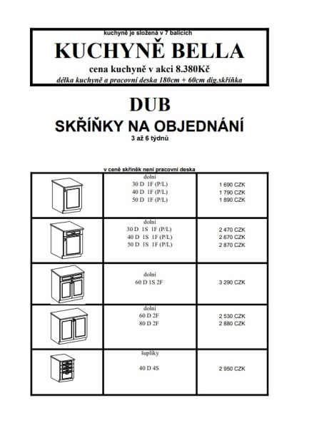 v ceně není pracovní deska, zboží je v demontu, na objednání 2 až 4 týdny