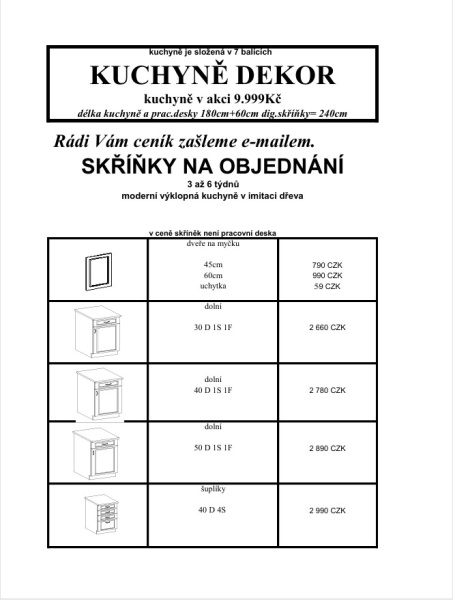 skříňky dodáváme v demontu, na objednání cca 2 až 4 týdny