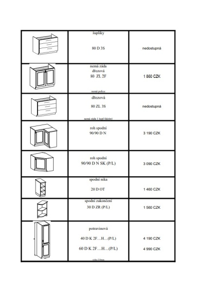 v ceně není pracovní deska, zboží je v demontu, na objednání 2 až 4 týdny