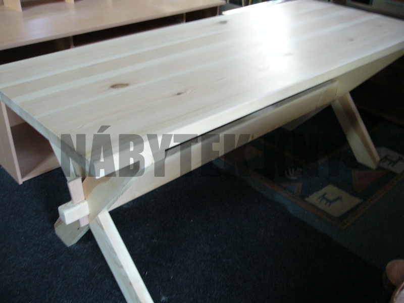 materiál borovice, lakovaný, křížové nohy, sámovaný, vlastní výroba, můžeme vyrobit jakýkoliv rozměr a množství