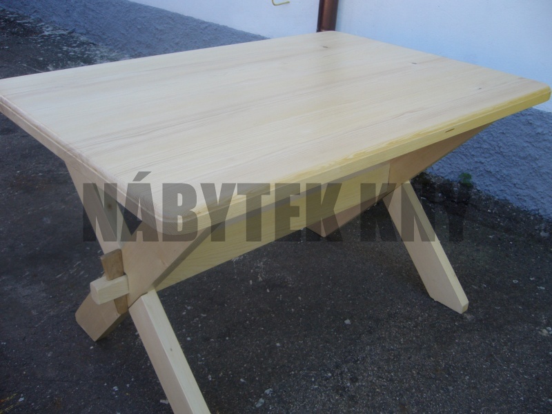 materiál borovice, lakovaná, síla horní desky 4cm, vlastní výroba, jen na zakázku
