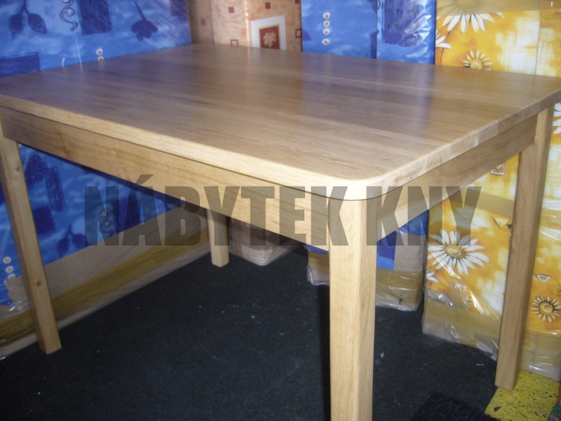 materiál dub, lakovaný, kulaté rohy, síla horní desky 25mm, nohy 6x6cm, vlastní výroba, jen na zakázku