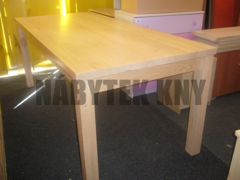 materiál dub, lakovaný, tl. 4cm, nohy 8x8cm, vlastní výroba, můžeme vyrobit jakýkoliv rozměr