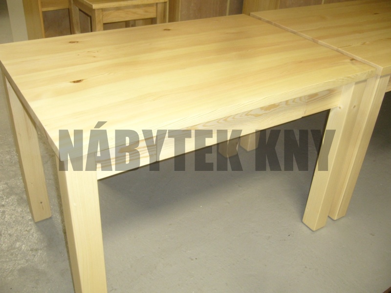 materiál borovice, lakovaná, šupík 60cm, tl. horní desky 4cm, noha 8x8cm, vlastní výroba, na přání vyrobíme jakýkoliv rozměr