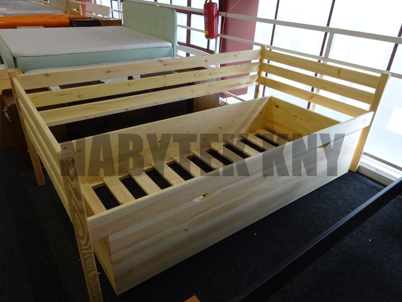 s ohrádkou a vyjížděcím lůžkem na matraci 100x200cm, vyvýšená od země 56cm, v ceně je rošt, v ceně není matrace, dodáváme v rozloženém stavu, na přání vyrobíme jakýkoliv rozměr