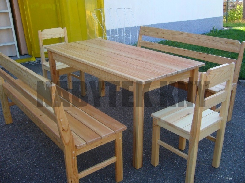 stůl 160x77cm cena 7.320Kč, lavice 160cm 4.390Kč, židle 1.780Kč, masiv, lakovaná, vlastní výroba, můžeme vyrobit jakýkoliv rozměr a množství, za příplatek 20% můžeme vyrobit v 10 odstínech lazura BORI