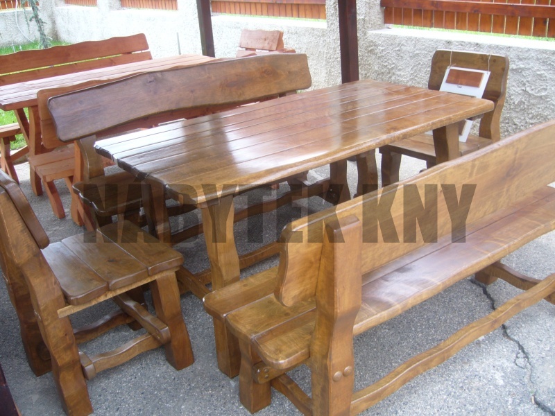 materiál olše (dub), odstín dub rustikal, v ceně je stůl rozměry:200x80x75cm, 2x lavice 200cm, 2xkřesílko 45x54x86cm, SKLADEM