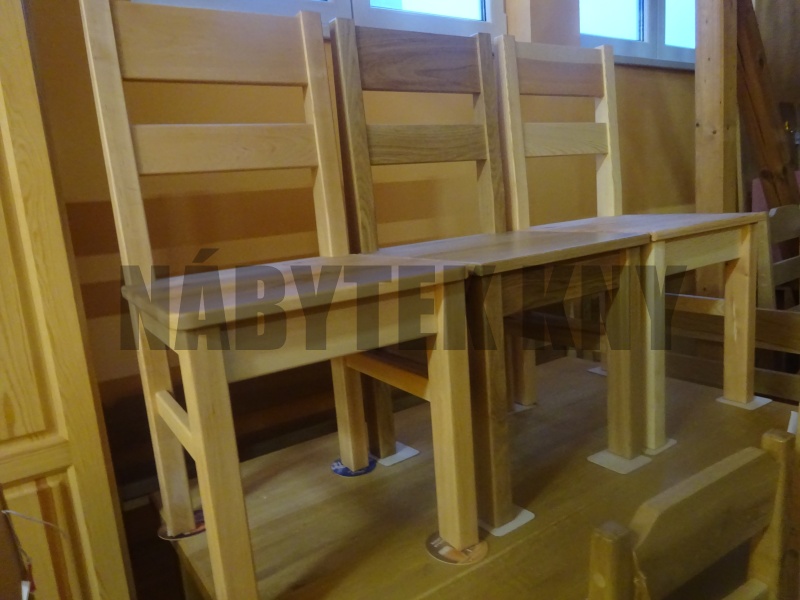 zprava židle z borovice cena kus 1.980Kč, dub cena kus 3.290Kč, olše cena kus 2.890Kč