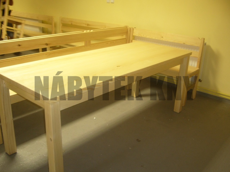 stůl, borovice, lakovaná, 200x80cm, horní deska tl. 4cm, noha 8x8cm, vlastní výroba, na přání vyrobíme jakýkoliv rozměr a množství