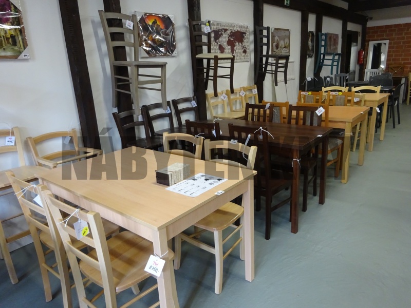 u stolu tmavé židle X57, mořené bukové, nosnost do 120kg, skladem více kusů