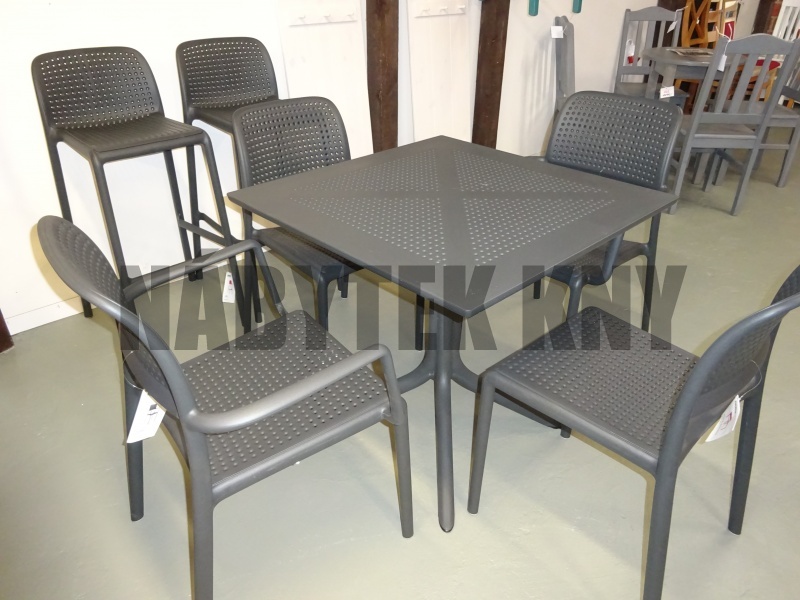 náhled z katalogu, celoroční venkovní provoz odolný, UU, barva antracit, do 200g, zboží v I. jakosti, dovoz Italy, modely: židle cena kus 1.890Kč, křeslo s OP cena kus 2.130Kč, barovka cena kus 2.500Kč