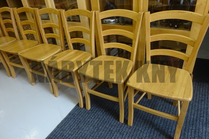 materiál dub, lakovaný, židle cena kus 1.970Kč, vhodné do provozu, nosnost do 150kg, skladem