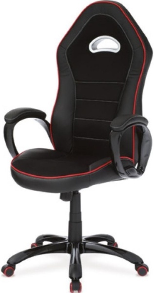 Barva černá, červený lem, eko kůže/mesh, černý lesklý kříž a područky, houpací mechanismus, nosnost do 100kg, dodáváme v rozloženém stavu, skladem ihned k odběru