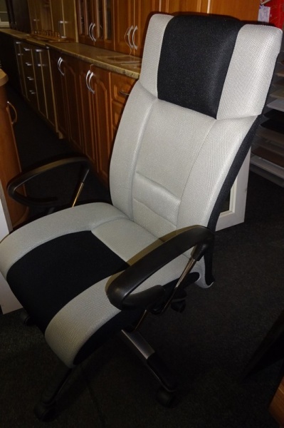 Barva černo/sv.melír, vysoký opěrák, celočalouněné i područky, výškově nastavitelné, nastavitelná síla protiváhy, houpací mechanismus, nosnost do 100kg, vyprodané